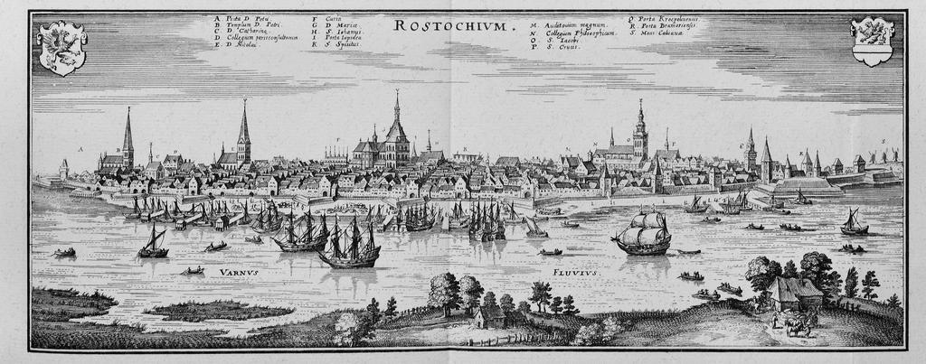 | Keywords: Rostochium (Merian).jpg Artwork creator Matthäus Merian Rostock Mecklenburg-Vorpommern Deutschland b 1653 copper engraving object history exhibition history credit line de accession number Topographia Saxoniae Inferioris Frankfurt am Main 1653 PD-100 Engravings of Topographia Saxoniae Inferioris Rostock in art Rostock in the 17th century |