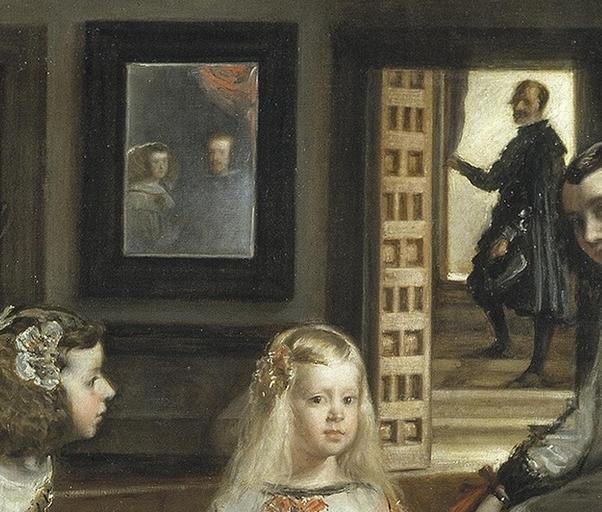 Keywords: Rotated frame effect.jpg Las Meninas oil on canvas 318 × 276 cm El Prado creator Diego Velázquez 1656 “57 PD-old-100 Rotated and cropped section of File Las Meninas 01 jpg for en wiki featured picture candidacy discussion Details of Las Meninas