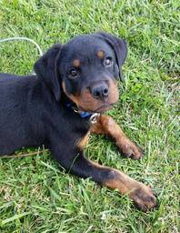 Keywords: rottweiler puppy dog pet animal baby cute canine purebred portrait grass alert domestic pup breed facial outdoors