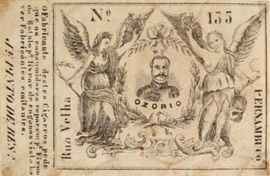 Keywords: Rótulo de cigarro. Manuel Luiz Osório.JPG Rótulo de cigarro Manuel Luís Osório Fundação Joaquim Nabuco http //www dominiopublico gov br/pesquisa/DetalheObraForm do select_action co_obra 19267 unknown author PD-old A coleção Brito Alves é composta de 1 252 rótulos de cigarros na técnica litográfica Foi iniciada pelo comerciante Vicente de Brito Alves e continuada pelo seu filho o advogado pernambucano José de Brito Alves 1887-1963 Em 1964 a coleção foi doada pela família ao então Instituto Joaquim Nabuco de Pesquisas Sociais Constitui-se em um raro e valioso patrimônio cultural e artístico registrando fatos históricos usos costumes e aspectos da vida cultural da sociedade brasileira e particularmente da pernambucana no final do século XIX até as primeiras décadas do século XX Manuel Luís Osório Cigarette cards |