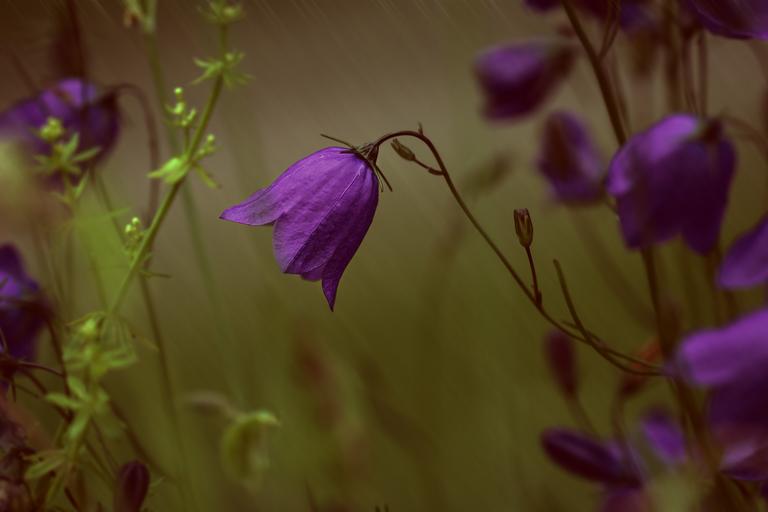 Keywords: round leaved bellflower campanula rotundifolia flower purple pointed flower nature blossom bloom close summer meadow rainy day rainy weather