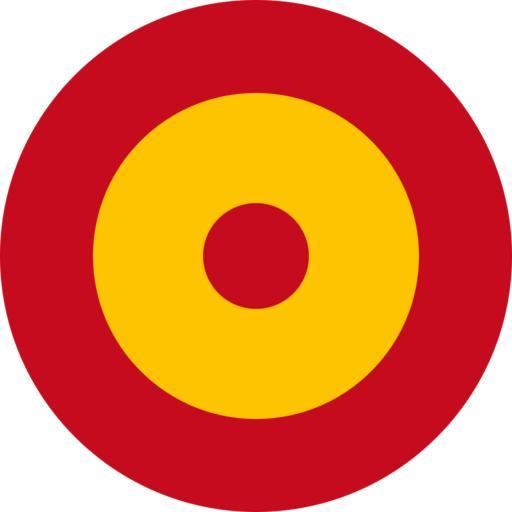 Keywords: Roundel of the Spanish Air Force.svg Roundel of the Spanish Air Force http //www airliners net/photo/Spain---Air/McDonnell-Douglas-EF-18A M /2060935/L/ sid c2e9b92b21b6375bd8d2fc97b60f9150 Spanish EF-18A<br> own work based on Spanish Air Force roundel and Flag of Spain 2007-03-01 D V Wiebe insignia Spanish aviation military roundel roundel;<br> Based on or inspired by book Andrzej Glass Samoloty '94 ISBN 83-85461-19-1 or<br/> Web http //cocardes monde online fr or<br/> some aviation magazines photos Lotnictwo Skrzydlata Polska and few others </div> Roundels of Spain Red and yellow roundels |