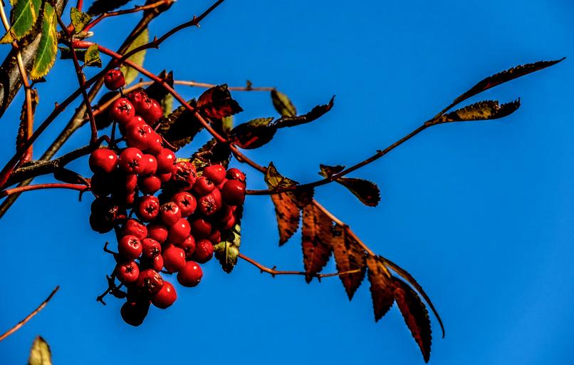 Keywords: rowan mountain ash autumn fall red nature tree berry leaf sunny autumn branch decorative bunch season fruit colorful color
