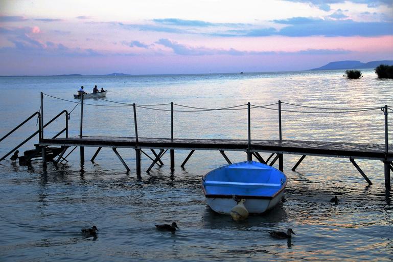Keywords: rowboat lake evening twilight pier dawn balaton sunset evening sky romance