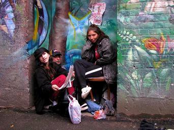 Keywords: Roxanne, Dave, and Michelle Smoking Crack in Alley.jpg en Roxanne Dave and Michelle were quietly sitting in an alley and smoking crack cocaine They agreed to pose for a quick informal shapshot All were warm friendly and good-natured In the DTES of Vancouver BC Canada own Name invalid 2008-07-31 Graffiti in Vancouver Crack cocaine Drugs in Canada 2008 in Vancouver Poverty in Vancouver Alleys in British Columbia Graffiti of plants |