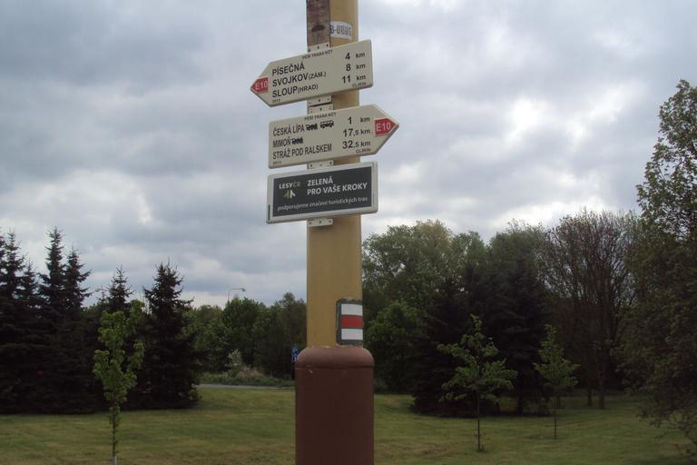 Keywords: Rozcestník u Arbesu 2.JPG cs Rozcestník na Moskevské own Zákupák 2014-05-04 Moskevská Česká Lípa Hiking and footpath fingerposts in Česká Lípa Labels of walking route E10 in Česká Lípa District Taken with Sony DSC-S930