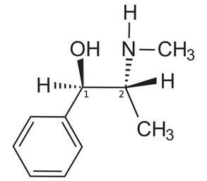 Keywords: RR-Pseudoephedrine.svg en 1R 2R - - -Pseudoephedrine<br /> IUPAC Name 1R 2R -2- methylamino -1-phenylpropan-1-ol<br /> The stereocenters are numbered own Wickey-nl 2009-12-15 Inkscape validSVG Pseudoephedrine