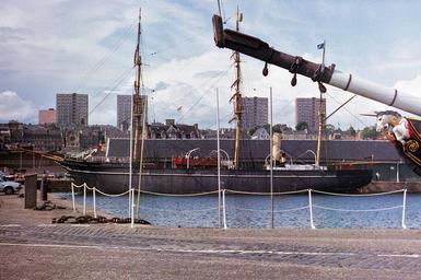 Keywords: RRS-Discovery-in-Victoria-Dock-Dundee-1986-1.jpg en RRS Discovery in Victoria Dock Dundee now the site of City Quay shortly after returning to Dundee in 1986 and before it moved to Discovery Point Note HMS Unicorn's mast protruding at the right-hand side The five multis multi-storey flats in the background- four in a row and another in the distance- have all since been demolished own Scanned colour negative Smonoking summer 1986 56 27 37 99 N 2 57 40 56 W region GB_heading NW Notes; usual brightness and colour adjustments but aside from IR dust removal no details modified And yes the composition of this photo is dire- but it does serve the purpose of showing Discovery in its old location if little else Discovery ship 1901 HMS Unicorn ship 1824 Highrise buildings in Dundee 1986 in Dundee |
