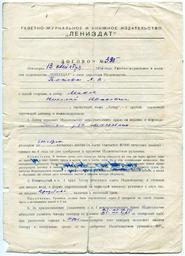 | Keywords: Ru-Lenizdat-dog-first-page.jpg ru Пе вая ст аница догово а 395 от 13 10 1956 года издательства Лениздат заключённого с авто ом ленинг адским поэтом иколаем Ивановичем аковым на издание стихов для маленьких книга Забавные исто ии 1956-10-13 Own archive Not applicable PD-RU-exempt Uploaded with UploadWizard Nikolai Ivanovich Makov |