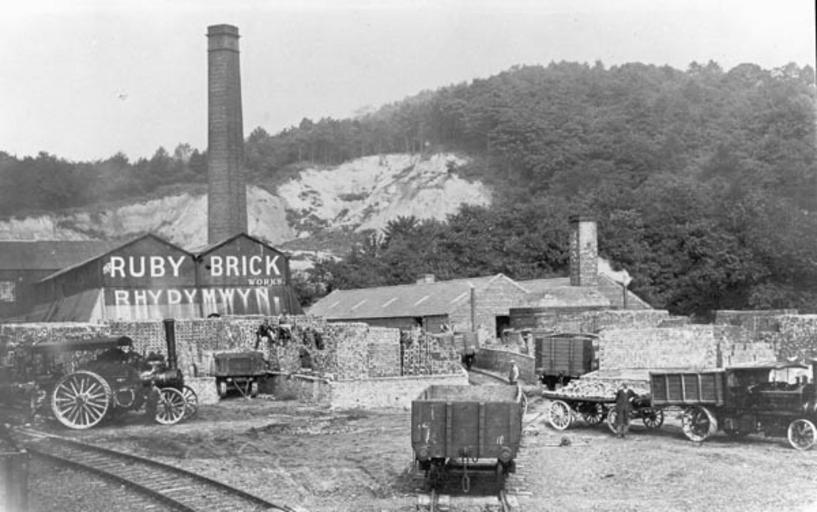 | Keywords: Ruby Brick & Tile Works, Rhydymwyn.jpg en The Ruby Brick Tile Works Rhydymwyn The photograph was probably taken before WWI It shows the claypit behind the chimney privately owned railway wagons a Foden steam tractor and a lorry owned by Evans Brothers of Mold Probably before 1914 http //lightmoor co uk/view_book php ref ARCH23 Ray Davies Collection Industrial Railways Tramways of Flintshire Part Seven The Mold and Denbigh Junction Railway by J R Thomas M Griffiths p 26 - Archive Issue 23 ISSN 1352-7991 23 other versions PD-old-70-1923 Uploaded with UploadWizard Rhydymwyn Bricks |