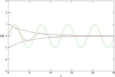 Keywords: Ruch harmoniczny.svg pl Wykres x t dla drgań harmonicznych prostych zielony i tłumionych czerwony <math>x t \left x_ 0 \sin \omega t + \phi e -\beta t \right </math> Parametry ruchów <math>\omega</math> 1 0 <math>\beta</math> 0 2 <math>x_ 0 </math> 1 0 <math>v_ 0 </math> 1 0 own Killerowski 2008-11-02 WPGW vector image Vibratory dampening