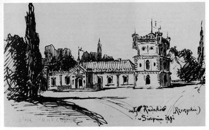 | Keywords: Rudakou manor in Belarus - 1891 AD.jpg  en palace of the Wankowicz family in Rudakou village Russian empire Minsk region Painted by Ignacy Wróblewski in 1891 AD ru Дво ец дво ян Ваньковичей в имении Рудаков Речицкий уезд  инская губе ния Российская импе ия Рисунок Игнатия В ублевского август 1891 г be Палац паноў Ваньковічаў у маёнтку Рудакоў Рэчыцкі павет  інская губе ня Расійская імпе ыя  алюнак Ігната У ублеўскага жнівень 1891 г reproduction from the book Aftanazy R Dzieje rezydencji na dawnych kresach Rzeczypospolitej w 11 t / R Aftanazy  Wrocław Warszawa Kraków Zaklad im Ossolinskich Wyd-wo 1997  Cz 2  T 11 Województwo kijowskie oraz uzupełnienia do tomów 1-10  787 s Ignacy Wróblewski 1891 Rudakou PD-old |