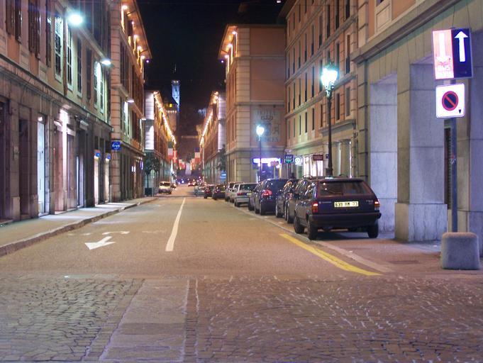 Keywords: Rue de Boigne - Chambéry.JPG The old rue de Boigne street of Boigne leading to Chambéry's castle in Savoie France by night Own 2007-02-20 Florian P Floflo Public domain Rue de Boigne Chambéry Road signs in Chambéry Night in Chambéry