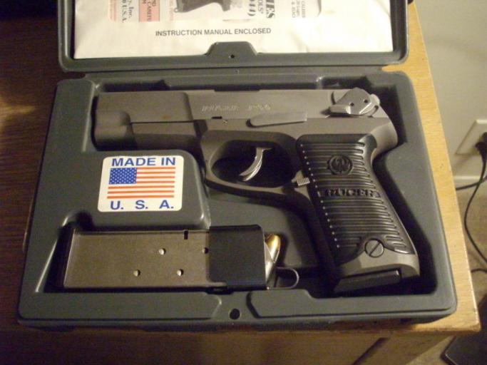 Keywords: RugerP90.JPG en Ruger P-90 in original box with extra magazine and speed loader own Cf collins 2010-07-05 Ruger P series