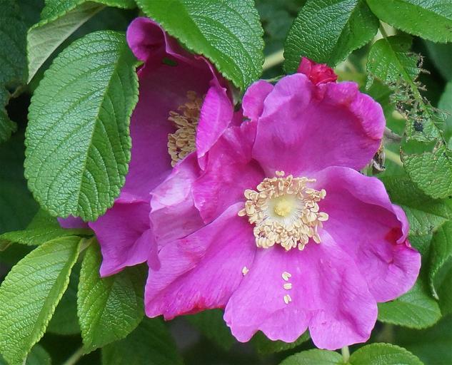 Keywords: rugosa rose rose flower blossom bloom plant garden nature pink hot pink gardening summer pair