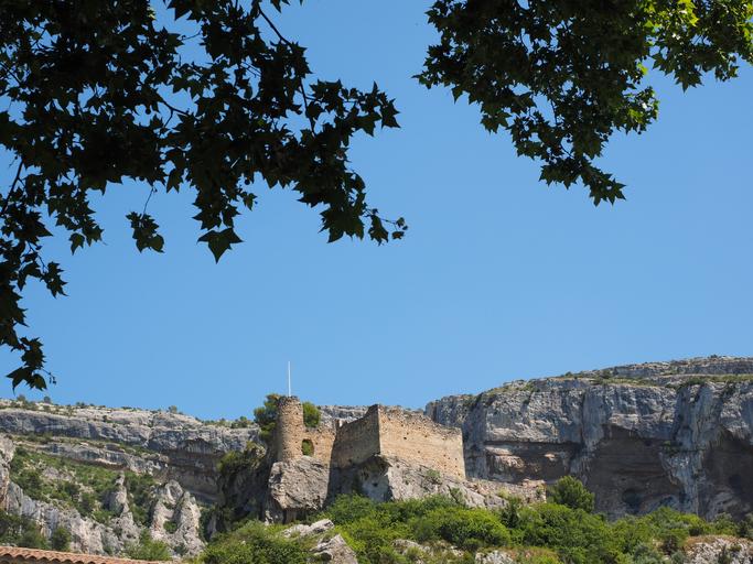 Keywords: ruin of philippe de cabassolle castle burgruine ruin fontaine-de-vaucluse france provence castle of philippe de cabassolle rock gorge