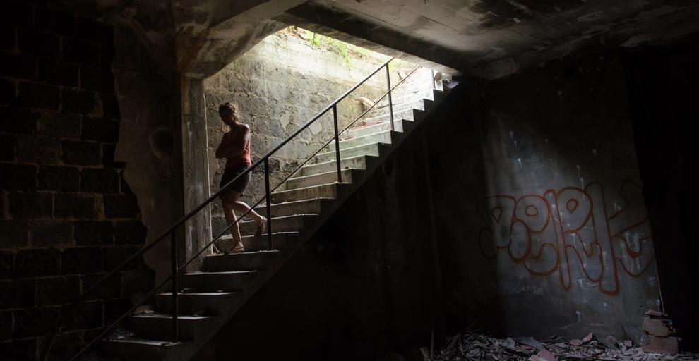 Keywords: ruin woman stairs leave destroyed girl broken dirty building factory old destruction break up concrete tannery france run down