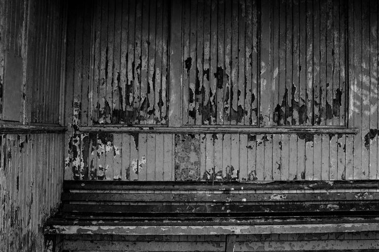 Keywords: rundown bench neglected black and white b w old wooden urban aged porch seat antique wood empty peeling faded abandoned building cracked cracks dilapidated uncared