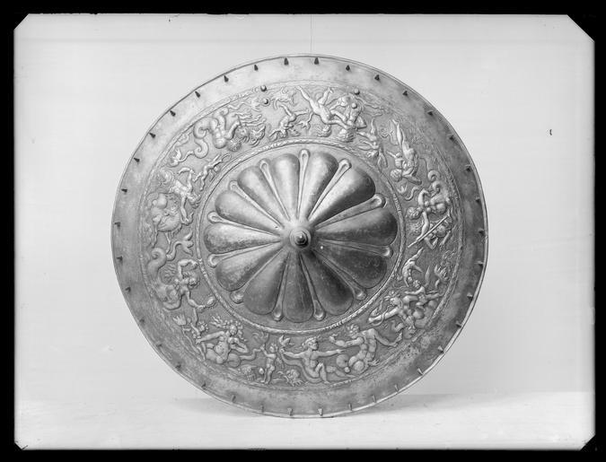 Keywords: Rundsköld - Livrustkammaren - 77058.tif LSH artwork sv Rund sköld med dekor i tre fält Ytterst en slät kantbård i ytterkanten 36 fyrsidiga taggar med spår av förgyllning Därinnanför en ring kantad med lagerkransbårder spår av förgyllning på ringen i hög relief ett nereid-och tritontåg mot punsad bakgrund spår av förgyllning I mitten en krysantemumblomma med 12 större blad med rester av förgyllning och däremellan smalare blanka blad I mitten en uppdriven spets däri inskruvat en 142 mm hög balusterformig fyrsidig spets med fasade kanter rester av förgyllning Ett hål på vardera sidan om spetsen <br/><br/>På baksidan ett kraftigt stålhandtag l 150 mm på motsatta sidan fastnitat en läderrem l 330 mm med ett hål samt en sölja av stål fastnitad i ett dubbelt stålband b 30 mm som i sin tur är nitat i skölden <br/><br/>Krigsbyte från Warszawa 1655-08-30 I LRK äldre inventarier upptagen som en del av Magnus Ladulås rustning utställd i kungalängden i Riddarholmskyrkan 1823-1855 original caption rundsköld - LRK 2935 Erövringen av Warszawa ca 1550 steel - leather g 4730 size mm 565 LRK Wawel 1000-2000 2000 Eagle and Three Crowns 2002 Eagle and Three Crowns 2002 Sweden and Europe 1632-1792 2003-2004 Örnen och de tre kronorna 2003 Parures Triomphales 2003 Krigsbyte 2007-2008 Imagines potestatis - Regalia and Symbols of Authority of Polish Kings and Grand Masters of the Teutonic Knights 2007 Europa Jagellonica 1386-1572 - Kunst und Kultur Mitteleuropas zur Zeit der Jagiellonen 2012-2013 Kutná Hora Warszawa Potsdam place of origin original filename LN_A00139_000139 39545 inventory number LRK 2935 77058 CC0 Rundsköld - Livrustkammaren - 77058-negative tif <gallery caption Different images of same object > File Detalj dekor Rundsköld Polen ca 1550 efter italiensk förebild - Livrustkammaren - 50181 tif File Rundsköld - Livrustkammaren - 25699 tif File Detalj dekor Rundsköld Polen ca 1550 efter italiensk förebild - Livrustkammaren - 67304 tif File Detalj dekor Rundsköld Polen ca 1550 efter italiensk förebild - Livrustkammaren - 58742 tif </gallery> Media contributed by LSH unmatched event Media contributed by LSH unmatched objKeyword Media contributed by LSH without any categories Media contributed by LSH unmatched place Shield images from Livrustkammaren Media contributed by LSH 2014-06 |