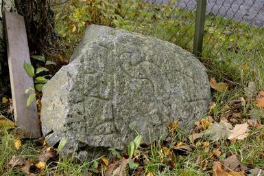 | Keywords: sweden haninge västerhaninge tungelsta vadet runsten runfragment geotagged fragment runor runes tunstone tjäder hane sverige runestone outdoor På en tomt i Vadet så ligger ett omålat runstensfragment inslängt alldeles vid ett staket. Det man kan uttyda av runraden är, "...ul : ma- : san : (b)-...", samt att man kan se en fågel (hanne) som är vänd åt höger och som står på det som är ovansidan på ett kors. Fragmentet är flyttat från sin ursprungliga plats och man tror att den kan vara ristad av runristaren Halvdan. (RAÄ Västerhaninge 1:1) På en tomt i Vadet så ligger ett omålat runstensfragment inslängt alldeles vid ett staket. Det man kan uttyda av runraden är, "...ul : ma- : san : (b)-...", samt att man kan se en fågel (hanne) som är vänd åt höger och som står på det som är ovansidan på ett kors. Fragmentet är flyttat från sin ursprungliga plats och man tror att den kan vara ristad av runristaren Halvdan. (RAÄ Västerhaninge 1:1) |