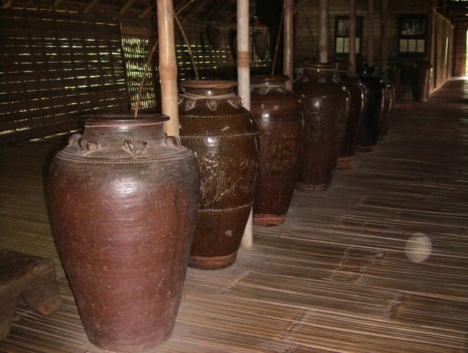 Keywords: Ruou can jars in E De long house.png Những vò rượu cần lớn bầy giữa nhà dài của ngư i Ê Đê Jars of rượu cần in a long house of E De people in Tây Nguyên Vietnam own self-taken 2007-10-28 Binh Giang Binh Giang Pictures by Binh Giang Rượu cần Long houses of the E De people |