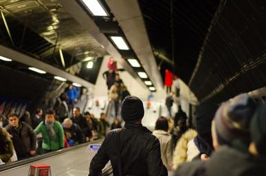 Keywords: rush hour traffic metro subway people waiting escalators rush jam city urban busy crowded transportation transport line downtown