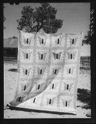 | Keywords: Russellbutterflyquilt.jpg Butterfly applique quilt made by Mrs Bill Stagg homesteader from Texas and Oklahoma Pie Town New Mexico Library of Congress CALL NUMBER LC-USF34- 036693-D P P 1940-06 Creator Russell Lee PD-USGov Pie Town New Mexico Russell Lee Quilts Close-ups of patchwork / quilts |
