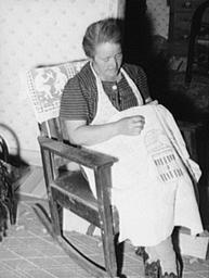 | Keywords: Russellembroidery.jpg Spanish-American woman doing needlework Many of the homes in this section show the love of the Spanish-Americans for colorful decoration Chamisal New Mexico Library of Congress CALL NUMBER LC-USF34- 037107-D P P LOC-image fsa 8b25706 1940-07 Creator Russell Lee PD-USGov June 1940 1940 in New Mexico Embroidery of the United States Russell Lee Taos County New Mexico Women facing right Black and white photographs of sitting women People sitting in rocking chairs | ||||