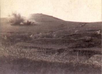 Keywords: RusShellJapLine1905.jpg Russo-Japanese War view scanned from a Stereoscope card published in 1905 From the collection of Infrogmation who scanned it and uploaded it to en Wikipedia 16 08 19 July 2003 Caption Russian 500-lb shell bursting near the Japanese siege guns -- Port Arthur The back of the card has this text Position In a valley between two and three miles north of Porth Arthur Direction About southwest Surroundings Barren brown hills several of them much higher than the one ahead with a valley of farms and Manchu villages off at the rear Outlook That firey outburst of smoke and flame and stones and earth and splintered steel is where a shell from one of the Russian forts i just bursting as it strikes the ground It is liable to kill anywhere within a hundred yards; it merely happened that none of the death-dealing fragments struck the photographer and his camera This stereograph which he did succeed in making is one of themost remarkable things ever produced by photography Five minutes after this negative was made another Russian shell hit the Japanese siege gun which you see at the extreme right putting it out of action The Russian shell-fire is directed over here in order to destroy this gun -- one of the eighteen huge 11-inch guns that the Japanese call their Osaka babies It is with these 11-inch mortars that the Russian forts at Port Arthur are being pounded into submission and the Russian battle ships over in the harbor smashed into hopeless wreck The guns were brought part way from Dalny by rail then hauled a mile and a half on huge rollers by gangs of 250 men Kennan the famous war correspondent says of the approach of the Russian shells like this one now bursting To me the Russian shells always seemed to say 'Here I come Here I come HERE I COME HERE I COME BANG ' I was always prepared for sudden death GFDL-en relicense PD-old 1905 photographs Siege of Port Arthur |