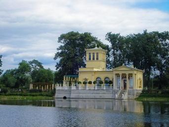 Keywords: russia st petersburg russia peterhof pond showplace tsaritsyn pond museum tsaritsyn pavilion water sky