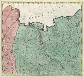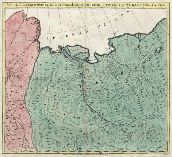 | Keywords: Russian Empire 1745 (Map XVI HQ).jpg  LargeImage Russian Empire 1745 Map XV HQ jpg Russian Empire 1745 Map XVII HQ jpg ru Пе вый официальный атлас Российской импе ии 1745 Часть Севе ного Ледовитого океана с устьем  еки Лены и севе ной частью Якутского уезда О игинальная ка та г ави ована на меди и  аск ашена в учную аква елью en First official geographic atlas of the Russian Empire 1745 Part of Arctic Ocean with mouth of Lena river and nothern part of Yakutsk uyezd Hand-coloured copper engraving Атлас Российский 1745 циф овая копия сделана Российской госуда ственной библиотекой http //www rsl ru Geographic atlas of the Russian Empire 1745 digital copy made by Russian State Library http //www rsl ru/en РА Russian Academy of Science 1745 <gallery> File Russian Empire 1745 Map XVI in Latin jpg Ва иант ка ты на латыни Same map in Latin File Russian Empire 1745 Map XVI jpg Че но-белый ва иант на  усском низкое качество Black white in Russian low quality </gallery> PD-old-100 Atlas of Russian Empire 1745 year in Russian hand-coloured Maps of Sakha |