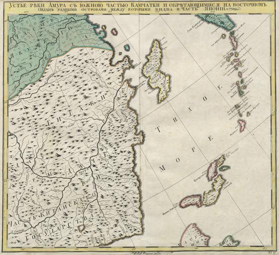 | Keywords: Russian Empire 1745 (Map XIX HQ).jpg  LargeImage Russian Empire 1745 Map XVIII HQ jpg ru Пе вый официальный атлас Российской импе ии 1745 Устье  еки Аму с южной частью Камчатки а также ост ова в Тихом океане с частью Японии О игинальная ка та г ави ована на меди и  аск ашена в учную аква елью en First official geographic atlas of the Russian Empire 1745 Mouth of Amur river and southern part of Kamchatka and islands in Pacific Ocean with part of Japan Hand-coloured copper engraving Атлас Российский 1745 циф овая копия сделана Российской госуда ственной библиотекой http //www rsl ru en Geographic atlas of the Russian Empire 1745 digital copy made by Russian State Library http //www rsl ru/en РА Russian Academy of Science 1745 <gallery> File Russian Empire 1745 Map XIX in Latin jpg Ва иант ка ты на латыни en Same map in Latin File Russian Empire 1745 Map XIX jpg Че но-белый ва иант на  усском низкое качество en Black white in Russian low quality </gallery> PD-old-100 Atlas of Russian Empire 1745 year in Russian hand-coloured Amur River |