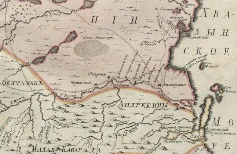 | Keywords: Russian Empire 1745 (Map XI HQ).M.jpg ru Пе вый официальный атлас Российской импе ии 1745 Положение мест между Чё ным и Каспйским мо ями вклчючает Кубань Г узинскую землю и устье еки Волги О игинальная ка та г ави ована на меди и аск ашена в учную аква елью en First official geographic atlas of the Russian Empire 1745 Map of places beetwen Black Sea and Caspian Sea include Kuban Georgia and mouth of Volga river Image Russian Empire 1745 Map XI HQ jpg Original from <br/> Атлас Российский 1745 циф овая копия сделана Российской госуда ственной библиотекой http //www rsl ru Geographic atlas of the Russian Empire 1745 digital copy made by Russian State Library http //www rsl ru/en 1745 РА Russian Academy of Science PD-Art-100 Derivative works of Atlas of the Russian Empire 1745 Old maps of the Caucasus Old maps of Kabarda |