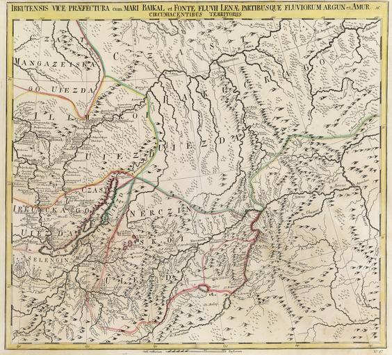 | Keywords: Russian Empire 1745 (Map XVII in Latin).jpg  Russian Empire 1745 Map XVI in Latin jpg Russian Empire 1745 Map XVIII in Latin jpg ru Пе вый официальный атлас Российской импе ии 1745 И кутская п овинция и озе о Байкал с ве ховьем  еки Лены а также с частями  ек А гунь и Аму с ок естностями  а латинском языке О игинальная ка та г ави ована на меди и  аск ашена в учную аква елью en First official geographic atlas of the Russian Empire 1745 in Latin Irkutsk province and Lake Baikal with Lena riverhead and parts of Argun and Amur rivers Hand-coloured copper engraving Атлас Российский 1745 en Geographic atlas of the Russian Empire 1745 РА Russian Academy of Science 1745 <gallery> File Russian Empire 1745 Map XVII HQ jpg Ка та на  усском языке Same map in Russian File Russian Empire 1745 Map XVII jpg Че но-белый ва иант на  усском низкое качество Black white in Russian low quality </gallery> PD-old-100 Atlas of Russian Empire 1745 year in Latin  |