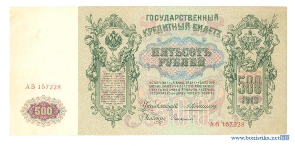 Keywords: Russian Empire-1912-Bill-500 rubles-Konshin-revers.jpg Банкнота Российской Импе ии достоинством 500 ублей об азца 1912 года Уп авляющий Коншин Russian Empire banknote 500 rubles version of 1912 year Konshin http //www bonistika net/index php site 1 par 1 id 251 it 7438 1912 \ 2009 Bank of Russian Empire PD-RU-exempt banknotes PD-RusEmpire PD-old cc-by-sa-3 0 Banknotes of the Russian Empire Nicholas II rule Banknotes with a face value of 500 |
