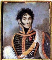Keywords: Russian officer 1808-09.JPG По т ет штабс-офице а / Из соб ания Бах ушина Изоб ажен в доломане и ментике Павлог адского гуса ского полка с о денами Гео гия 4-й степени Владими а 4-й степени с бантом и альтийским к естом own scan 1808-1809 anonimous PD-old-100 Portrait miniatures in the Moscow State Historical Museum Portraits of hussars from Russia Files uploaded by Shakko from various sources 2nd Pavlogradsky Hussar Regiment |