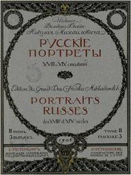 | Keywords: Russian portraits by Nicholas Mikhailovich Romanov (color).JPG обложка 1 тома книги «Русские по т еты XVIII и XIX веков Издание Великого князя иколая ихайловича Романова» выпущенной в 1905-1909 годах 2 1905 1909 anonymous PD-RusEmpire Images from Russian portraits by Nicholas Mikhailovich Romanov 1905 books |