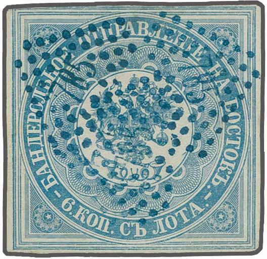 | Keywords: Russian Post Office Alexandria 1863 6k.jpg Russian Post Office in Alexandria Russian Empire 1863 6 kopecks indigo A superb used example cancelled by three strikes of the dotted '785' numeral handstamp in blue Exceptional and extremely rare one of just two perhaps three examples recorded thus Mi 1 Sold for CHF2 800 00 in 2015 Почтовая ма ка для банде олей Русское почтовое отделение в Александ ии 1863 6 коп адпись Банде ольное отп авление на Восток 6 коп с лота http //stampauctionnetwork com/co/co201116 cfm stampauctionnetwork com Russian Post Office in Alexandria; uploaded by Michael Romanov 1863 stamp ; 2015-06-23 PD-RusEmpire stamps Stamps of Russia 1863 Coats of arms of Russia on stamps Newspaper wrappers |
