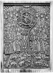 | Keywords: Russian - "Praise the Lord from the Heavens" - Walters 71256.jpg  This ivory shows Jesus Christ as God enthroned in heaven among the sun moon and shining stars Four creatures symbolizing the Evangelists cherubim the Virgin Saint John the Baptist and a multitude of angels surround him Below humanity and various animals of the earth and sea are giving praise to him Compositions illustrating Psalm 148 as the present ivory does are first attested in Byzantine wall-paintings of the mid-14th century Russian ivory carvings very similar to this one are preserved in the Russian Museum Saint Peterburg inv DRK 40 and in the Kunstsammlungen Weimar inv A 27c century 17 Early Modern ivory cm 9 6 4 1 accession number 71 256 879 Henry Walters Baltimore date of acquisition unknown by purchase Walters Art Museum Henry Walters Acquired by Henry Walters Translation Praise the Lord from the heavens; praise him from the heights Praise him all his angels; praise him Psalm 148 1-2 A Millennium of Christianity Russian Art from The Walters Art Gallery The Walters Art Gallery Baltimore 1988-1989 place of origin Russia Walters Art Museum license Russian art in the Walters Art Museum Carving in Russia Ivory sculptures Media contributed by the Walters Art Museum needs category review Psalm 148 |