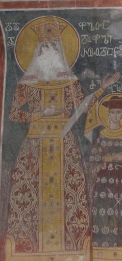 | Keywords: Rusudan Bagration in a Gelati fresco (cropped).JPG en A fresco from the Gelati Monastery Georgia ka გელათის ღვთისმშ ბლის ტაძრის ჩრდილ ეთ კედლის პირველ რეგისტრზე გამ სახულია ისტ რიული პირები ქტიტ რები მეფეთმეფე დავით მე თხე აღმაშე ებელი რ მელსაც მარცხე ა ხელში უჭირავს გელათის ტაძრის მ დელი მარჯვე აში - სიგელი მის თავზე გამ სახულია ღვთის ხელი რ მელიც დავითს აკურთხებს რ გ რც ტაძრის აღმშე ებელს მის გვერდით გამ სახულია მე-16 საუკუ ის დასავლეთ საქართველ ს კათალიკ სი ევდემ ჩხეტიძე მათ გვერდით არია იმერეთის მეფე ბაგრატ მე-3 1510-1565 დედ ფალი ელე ე ბაგრატის შვილი - შემდგ მში იმერთა მეფე გი რგი მე-2 1565-1583 მისი მეუღლე - დედ ფალი რუსუდა ი და მათი შვილი - ბაგრატი რ მელიც ადრეულ ასაკში გარდაიცვალა 16th century 2008 photo http //lemill net/content/webpages/10d210d410da10d010d710d810e1-10d910e310da10e210e310e010e310da10d8-10eb10d410d210da10d410d110d8/view LeMill author Gelati fresco 01 JPG Custom license marker 2013 11 24 PD-old-100 Gelati Monastery Cathedral of the Nativity of the Virgin - Inside Asomtavruli frescos Rusudan of Georgia |