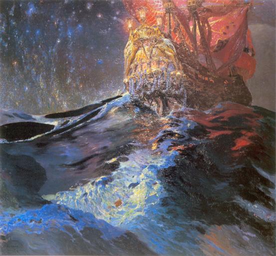 | Keywords: Ruszczyc-Nec mergitur.jpg Nec mergitur oil on canvas 204x221 Luthuanian Museum of Art in Vilnus Scanned from album Malarstwo Polskie w zbiorach za granicą by Stefania Krzysztofowicz-Kozakowska Wydawnictwo Kluszczyński 2003 ISBN 83-88080-85-7 1904-1905 Creator Ferdynand Ruszczyc Copyright expired PD-old-auto 1936 WM-PL-scan Fictional ships 1905 paintings Oil paintings Ferdynand Ruszczyc | ||||