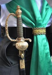| Keywords: Rutenhauptmann Säbel.jpg  Säbel des Rutenhauptmanns mit dem Stadtwappen Trommlerkorps der Gymnasien Rutenfest Ravensburg own 2012-07-25 Photo Andreas Praefcke Trommlerkorps der Gymnasien Rutenfest Ravensburg Coats of arms of Ravensburg Photos by User AndreasPraefcke |