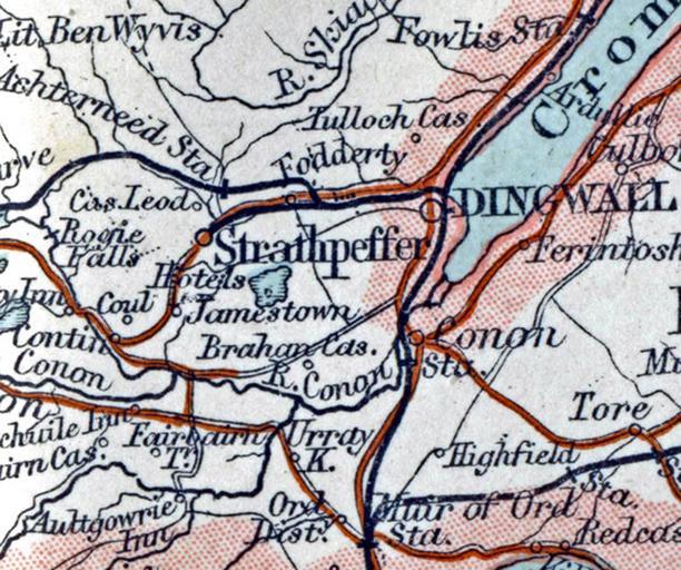 | Keywords: Ruth Strathpeffer Achterneed Rly Map 1899 edited-3.jpg en The Dingwall and Strathpeffer area of Ross Cromarty Map published in 1899 showing the Dingwall and Strathpeffer areas of Ross Cromarty Scotland John Bartholomew Co 1899 my scan of a map published in 1899 PD-old-100 Ross and Cromarty Maps of Highland council area |
