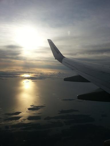 Keywords: ryanair flight aircraft sky plane travel fly clouds wing view dawn sunset