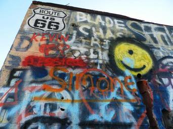 | Keywords: danby ca danbyca route 66 route66 danby street art streetart grafitti route 66 califronia route66califronia danby wall danbywall danby abandoned building danbyabandonedbuilding Old building with painted walls in Danby CA One of the places you can "tag" on Route 66, or do Art as my friend says. Only walls remaining in Danby CA on Route 66. www.route66west2east.com Old building with painted walls in Danby CA One of the places you can "tag" on Route 66, or do Art as my friend says. Only walls remaining in Danby CA on Route 66. www.route66west2east.com |