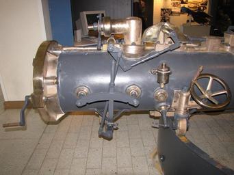 | Keywords: S2 torpedo tube 4.JPG 456 mm in on torpedo tube of the Finnish torpedo boat S2 The torpedo tube belonged originally to the Russian torpedo boat Bditelnyj which struck a mine and sank on 27th of November 1917 The torpedo tubes of Bditelnyj were salvaged in 1919 and mounted on the torpedo boats S1 and S2 in early 1925 S2 foundered in a storm in October 1925 and was lost with all hands S2 was salvaged in 1926 and this torpedo tube was placed on display in Suomenlinna in 1930 Restored in 2009-2010 and now in Manege Military Museum The torpedo tube is manufactured at Vulcan shipyard and engineering works in Turku serial number 48 Torpedovene S2 n 456 mm torpedoputki Torpedoputki kuului alunperin venäläiseen Bditelnyj-torpedoveneeseen joka ajoi miinaan ja upposi marraskuun 27 päivänä 1917 Aluksen torpedoputket nostettiin 1919 ja niillä varustettiin uudelleen torpedoveneet S1 ja S2 vuoden 1925 alussa S2 upposi myrskyssä vuoden 1925 lokakuussa vieden mukanaan koko miehistönsä Alus nostettiin 1926 ja tämä torpedoputki luovutettiin Sotamuseolle ja asetettiin näytteille Suomenlinnaan vuonna 1930 Putki kunnostettiin 2009-2010 ja on nyt näytteillä Sotamuseon Maneesissa Torpedoputki on valmistettu Vulcanin telakalla Turussa sarjanumero 48 own MKFI 2010-05-13 60 8 45 09 N 24 59 20 61 E region FI S2 ship 1901 Bditelnyy ship 1906 Manege Military Museum Taken with Canon PowerShot SX10 IS 450-mm torpedo tube model 1904 ImageNote 1 1133 923 1055 1300 3648 2736 2 Firing lever Laukaisuvipu ImageNoteEnd 1 ImageNote 2 1304 171 958 709 3648 2736 2 Launching charge chamber and firing pin Ajopanoksen panoskammio iskureineen ImageNoteEnd 2 ImageNote 3 2316 962 428 452 3648 2736 2 Lower part of the launching pressure gauge Laukaisupaineen mittarin alaosa ImageNoteEnd 3 ImageNote 4 2893 983 737 784 3648 2736 2 Traverse lock Sivusuuntauksen lukitus ImageNoteEnd 4 Files by User MKFI |