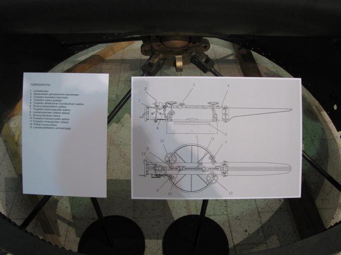 | Keywords: S2 torpedo tube diagram.JPG 456 mm in on torpedo tube of the Finnish torpedo boat S2 in Manege Military Museum Firing lever Launching charge chamber and firing pin Torpedo engine starter Torpedo lock Torpedo launch angle gyro angle setting Place for traverse indicator Torpedo speed setting Lower part of the launch pressure gauge Traverse lock Torpedo depth setting Torpedo air pressure measurement valve Torpedo tube traverse Launcher safety Torpedovene S2 n 456 mm torpedoputken kaavio Maneesissa Laukaisuvipu Ajopanoksen panoskammio iskureineen Torpedon koneiston käynnistin Torpedon lukitus putkeen Torpedon lähtökulman hyrräkulman asetus Sivusuuntausasteikon paikka Torpedon kulkunopeuden asetus Laukaisupaineen mittarin alaosa Sivusuuntauksen lukitus Torpedon kulkusyvyyden asetus Torpedon ilmanpaineen mittaus Putken sivusuuntaus Laukaisulaitteiston varmistintappi own MKFI 2010-05-13 60 8 45 09 N 24 59 20 61 E region FI S2 ship 1901 Bditelnyy ship 1906 Manege Military Museum Taken with Canon PowerShot SX10 IS 450-mm torpedo tube model 1904 Files by User MKFI |