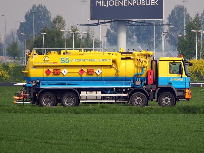 Keywords: S5 Aircraft Fuel Supply truck at Schiphol.JPG Photographed near runway 06 own 2014-04-21 09 20 13 Alf van Beem CC-Zero Airport Ground Support Equipment at Schiphol Airport tank trucks Trucks in the Netherlands 2014 at Amsterdam Airport Schiphol April 2014 in the Netherlands Taken with Olympus E-M5
