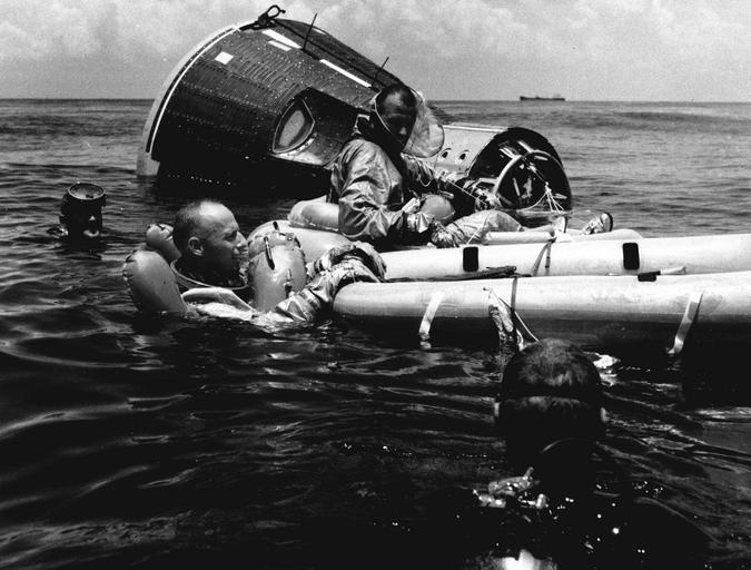 Keywords: blackandwhite monochrome outdoor black and white S65-39907 (21 July 1965) --- Prime crew for the Gemini-Titan 5 (GT-5) spaceflight, astronauts Charles Conrad Jr. (in water) and L. Gordon Cooper Jr. (in raft) practice survival techniques following successful egress from their Gemini Static Article 5 spacecraft in the Gulf of Mexico. Cooper is command pilot and Conrad is pilot for the GT-5 mission. NASA Photograph Collection. (2016/04/28). S65-39907 (21 July 1965) --- Prime crew for the Gemini-Titan 5 (GT-5) spaceflight, astronauts Charles Conrad Jr. (in water) and L. Gordon Cooper Jr. (in raft) practice survival techniques following successful egress from their Gemini Static Article 5 spacecraft in the Gulf of Mexico. Cooper is command pilot and Conrad is pilot for the GT-5 mission. NASA Photograph Collection. (2016/04/28). |