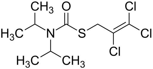 | Keywords: S-(2,3,3-trichloroallyl) diisopropylcarbamothioate 200.svg  validSVG Structure of S- 2 3 3-trichloroallyl diisopropylcarbamothioate Own 2014-05-10 Emeldir <span class signature-talk >talk</span> Chemical structure verified https //upload wikimedia org/wikipedia/commons/e/ed/S- 282 2C3 2C3-trichloroallyl 29_diisopropylcarbamothioate_200 svg 1S/C10H16Cl3NOS/c1-6 2 14 7 3 4 10 15 16-5-8 11 9 12 13/h6-7H 5H2 1-4H3 MWBPRDONLNQCFV-UHFFFAOYSA-N 2303-17-5 Synonyms <small>2 3 3-trichloro-2-propene-1-thiol diisopropylcarbamate 2 3 3-Trichloro-2-propene-1-thiol diisopropylcarbamate 2 3 3-Trichloroallyl-N N-diisopropylthiolcarbamate Avadex BE Avadex BW Avadex BW R Bis 1-methylethyl carbamothioic acid S- 2 3 3-trichloro-2-propenyl ester CP 23426 Diisopropylthiocarbamic acid S- 2 3 3-trichloroallyl ester diisopropylthiocarbamic acid S- 2 3 3-trichloroallyl ester Far-Go Fargo R S- 2 3 3-trichloro-2-propenyl bis 1-methylethyl carbamothioate S- 2 3 3-Trichloro-2-propenyl bis 1-methylethyl carbamothioate S- 2 3 3-Trichloroallyl N N-diisopropylthiocarbamate S-2 3 3-trichloroallyl diisopropylthiocarbamate S-2 3 3-Trichloroallyl diisopropylthiocarbamate Triallate</small> PD-chem Thiocarbamates Herbicides Isopropyl compounds Alkene derivatives Organochlorides  |